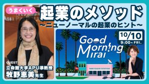 起業家に役立つ、これからのニューノーマルを考えるオンライン朝活、「明日が見える朝ジカン GOOD MORNING MIRAI」。今回のゲストは、ママ大の顧問でもある立命館アジア太平洋大学(APU)準教授、牧野恵美先生。 長年、起業家教育を研究してきた牧野先生が語るのは、「ニューノ […]
