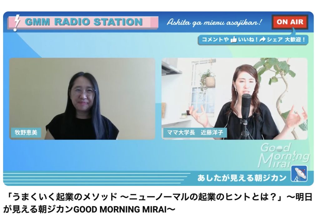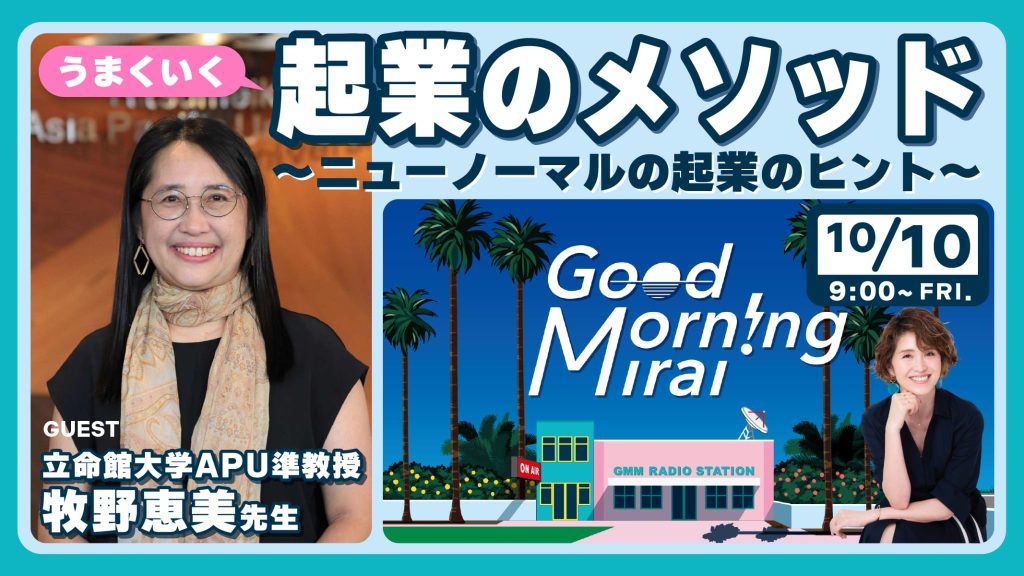 起業家に役立つ、これからのニューノーマルを考えるオンライン朝活、「明日が見える朝ジカン GOOD MORNING MIRAI」。今回のゲストは、ママ大の顧問でもある立命館アジア太平洋大学(APU)準教授、牧野恵美先生。